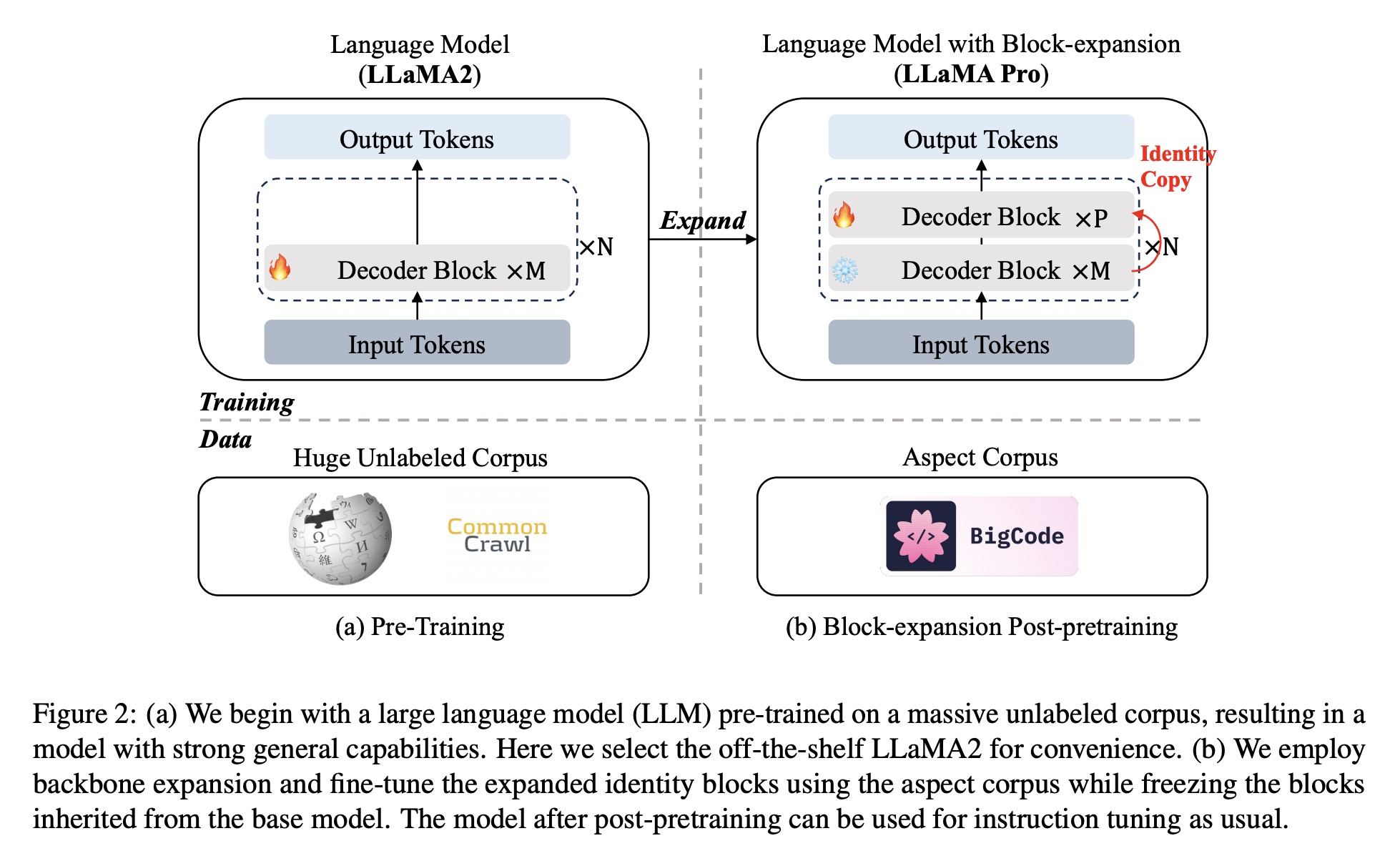 LLaMA Pro: Progressive LLaMA with Block Expansion