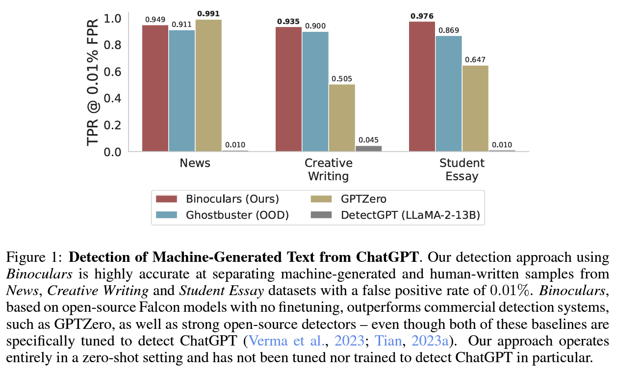 Spotting LLMs With Binoculars: Zero-Shot Detection of Machine-Generated Text