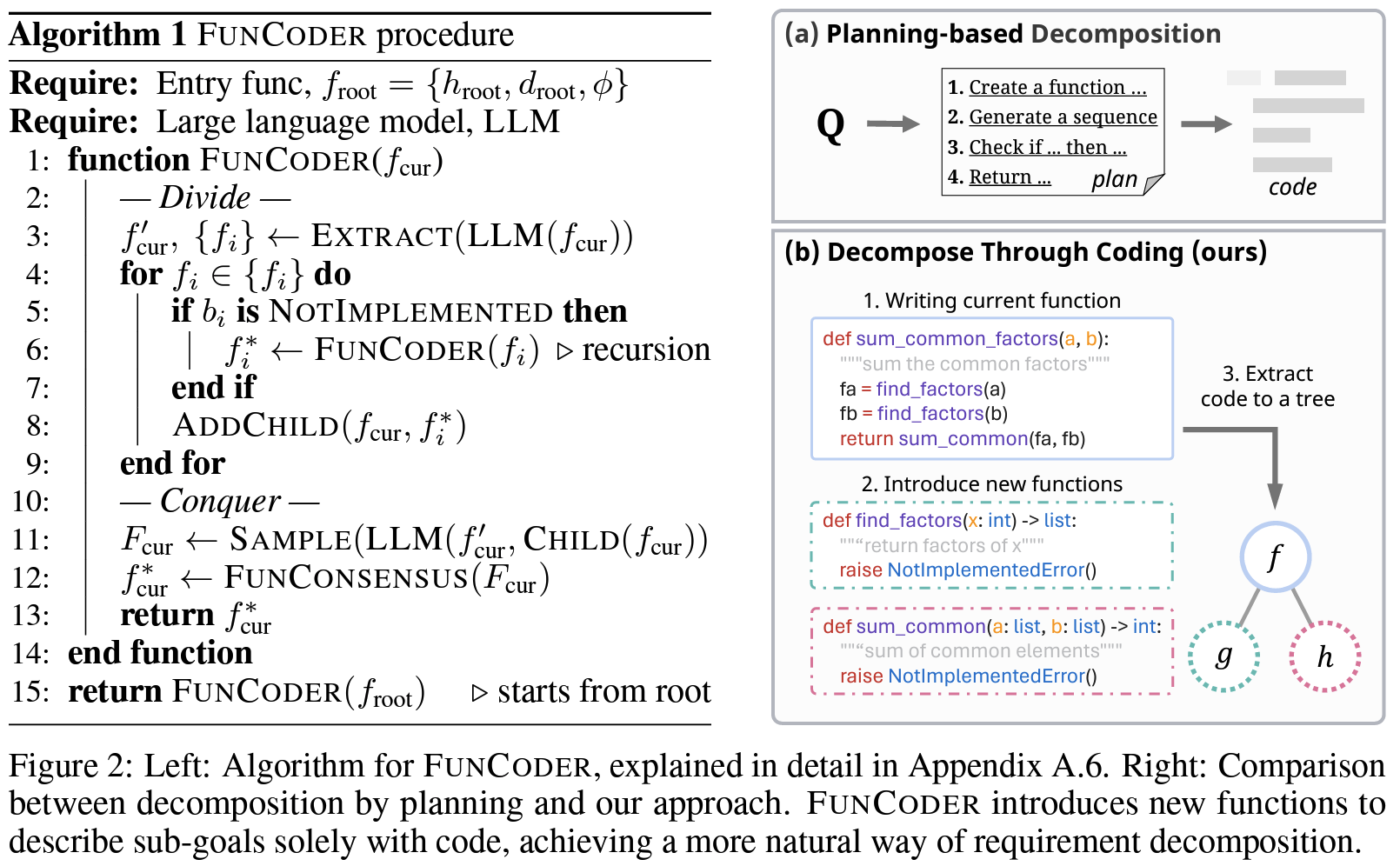 Divide-and-Conquer Meets Consensus: Unleashing the Power of Functions in Code Generation