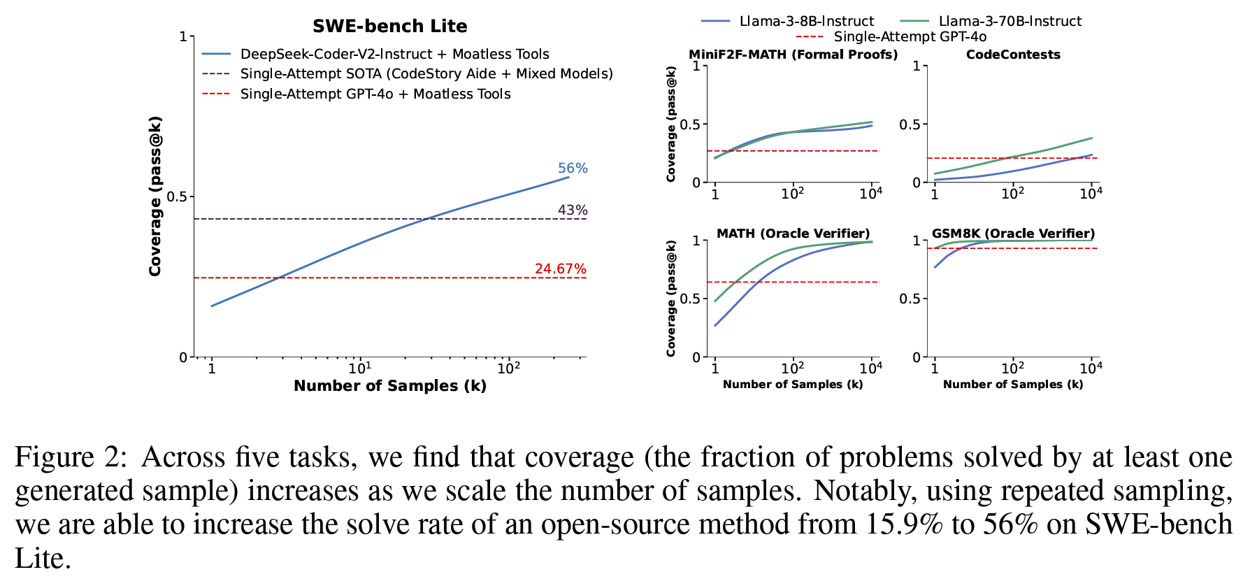 Large Language Monkeys: Scaling Inference Compute with Repeated Sampling